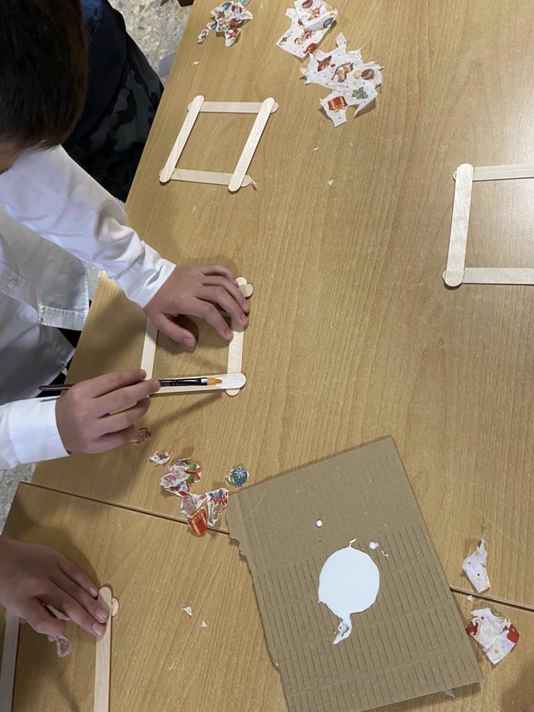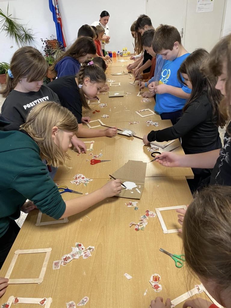 Četvrtaši s učiteljicama na kreativnoj radionici. Izrađivali su okvire za razredne fotografije. Malo zahtjevnija tehnika, ali to su ipak četvrtaši. Nek se zna tko je najstariji u razrednoj nastavi.
